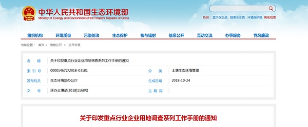 日前,生態環境部印發重點行業企業用地調查系列工作手冊,詳情如下: