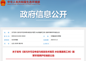 2020年3月13日,生態環境部發布了《排污許可證申請與核發技術規范 水處理通用工序》