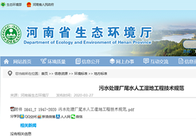 2020年1月21日,河南省生態(tài)環(huán)境廳、河南省市場監(jiān)督管理局聯(lián)合發(fā)布了《污水處理廠尾水人工濕地工程技術規(guī)范》。自2020年4月21日起實施。