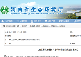 2020年3月27日,河南省生態(tài)環(huán)境廳發(fā)布了《工業(yè)涂裝工序揮發(fā)性有機物污染防治技術規(guī)范》(DB41/T 1946-2020)