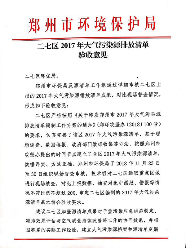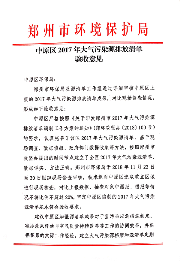 我司承接的“中原區、二七區、惠濟區2017年大氣污染源排放清單”順利通過驗收