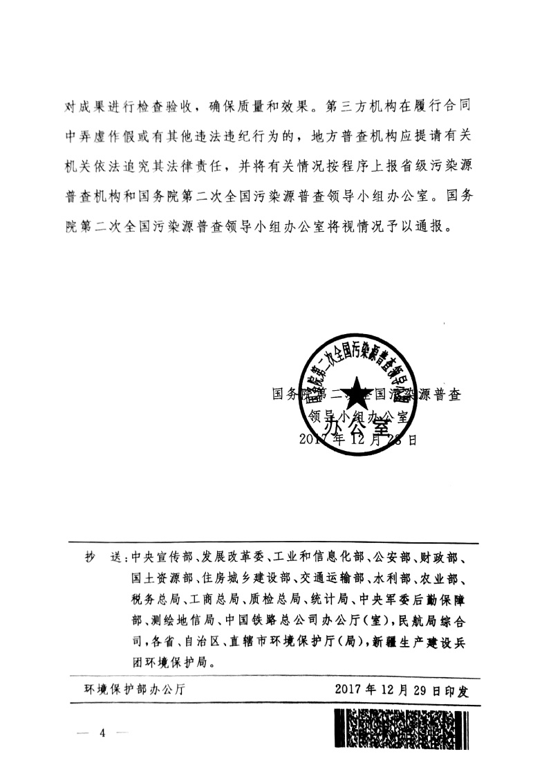上一篇:國污普【2017】10號關于第二次全國污染源普查普查員和普查指導員選聘及管理工作的指導意見 下一篇:國污普【2018】1號關于印發《第二次全國污染源普查伴生放射性礦普查檢測技術規定》的通知全文