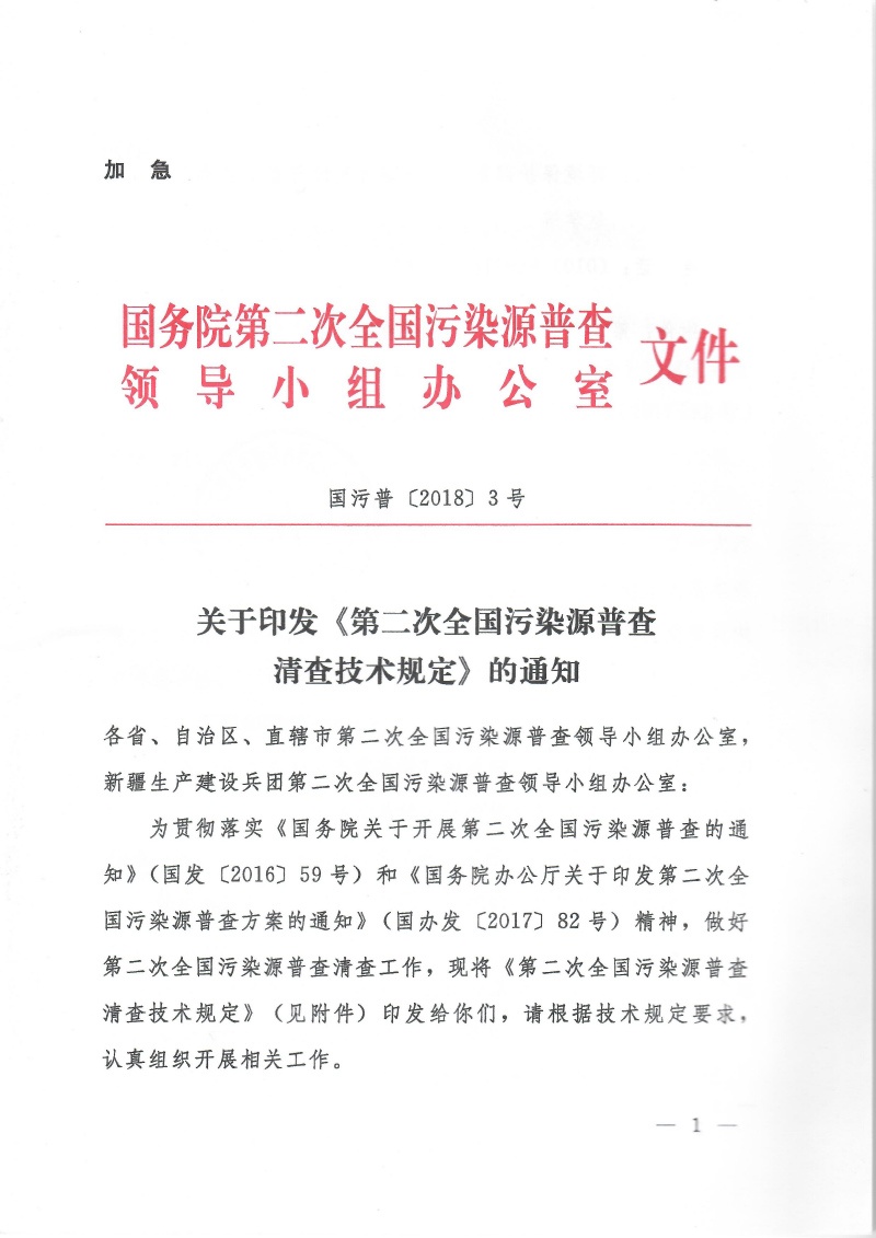 國(guó)污普【2018】3號(hào)關(guān)于印發(fā)《第二次全國(guó)污染源普查清查技術(shù)規(guī)定》的通知