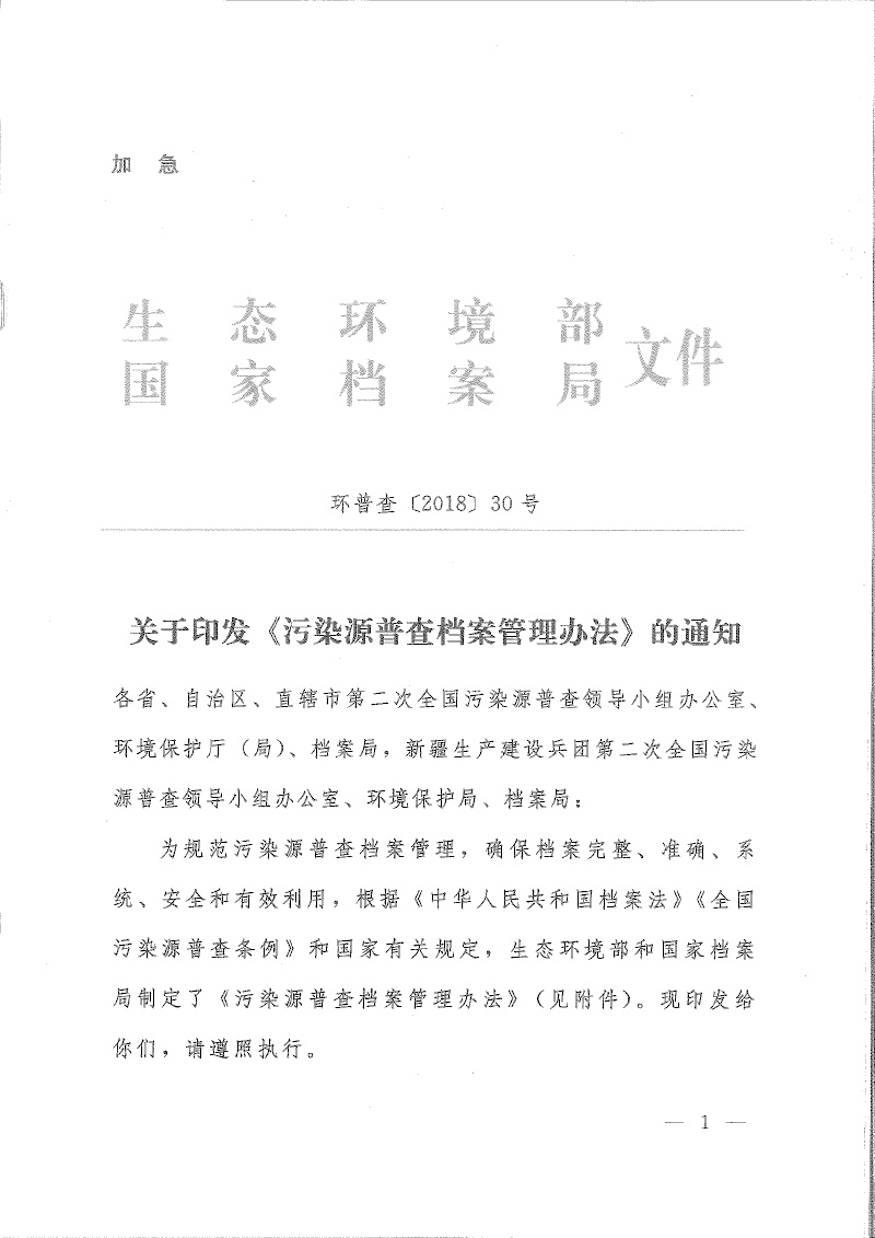環普查【2018】30號關于印發《污染源普查檔案管理辦法》的通知