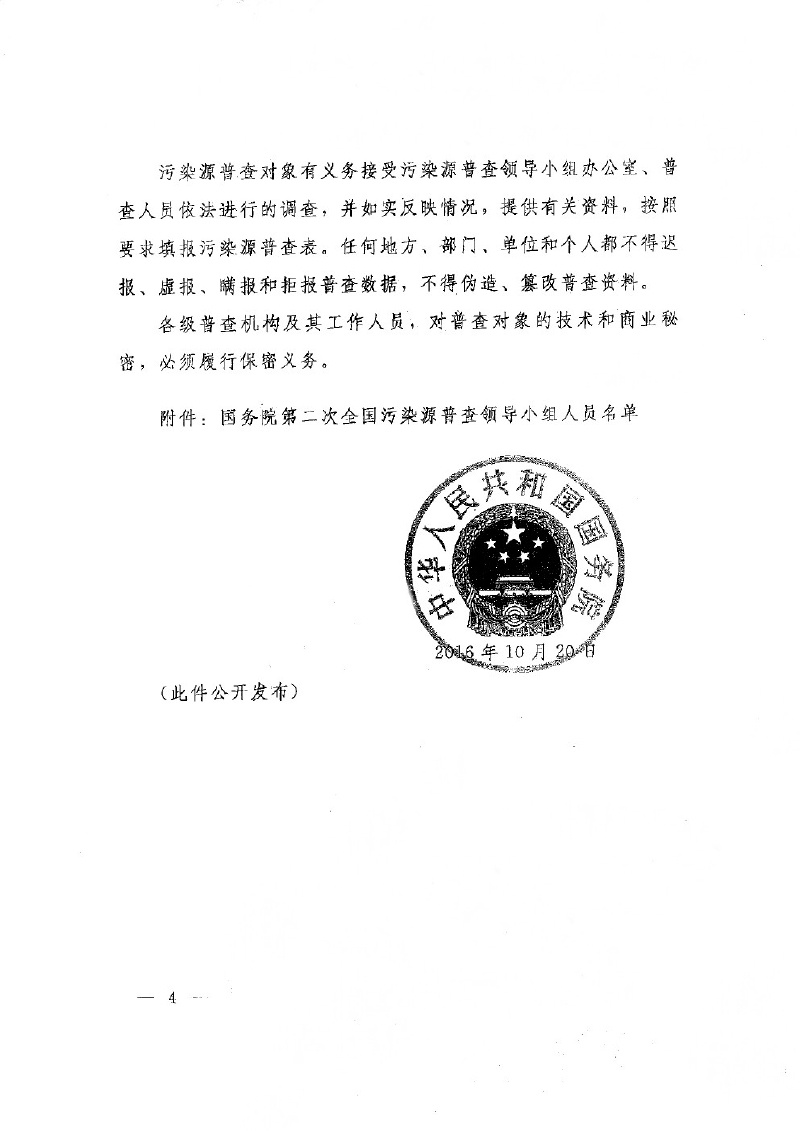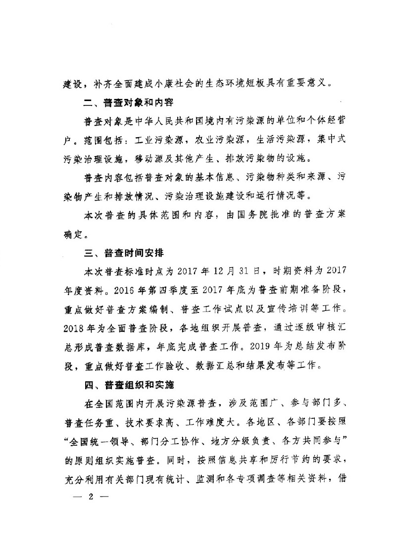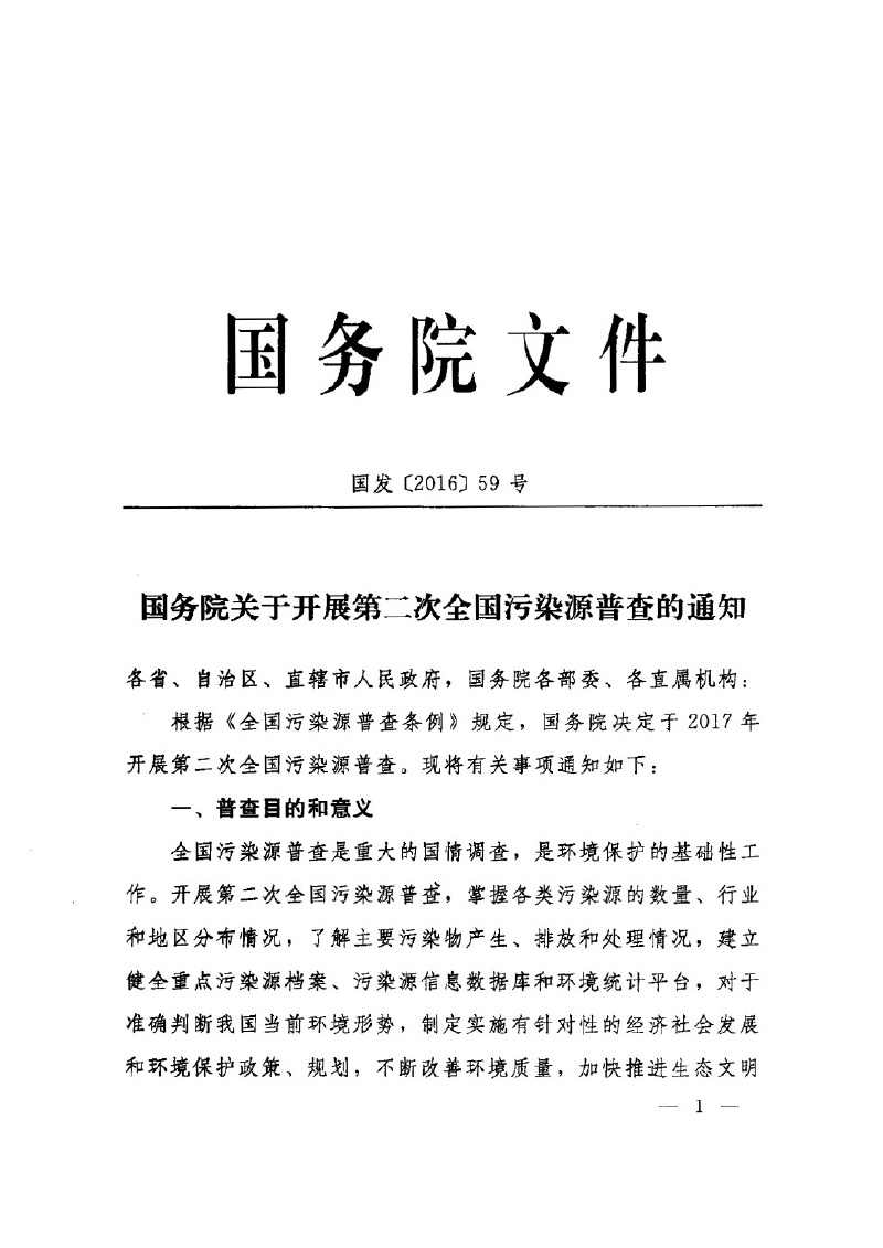 國發【2016】59號國務院關于開展第二次全國污染源普查的通知