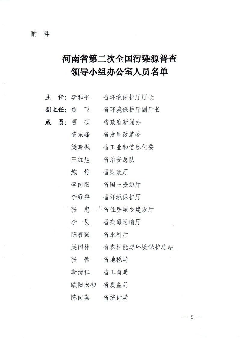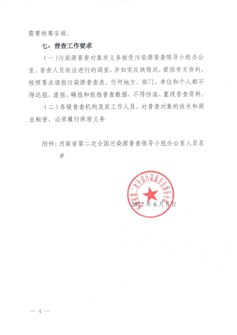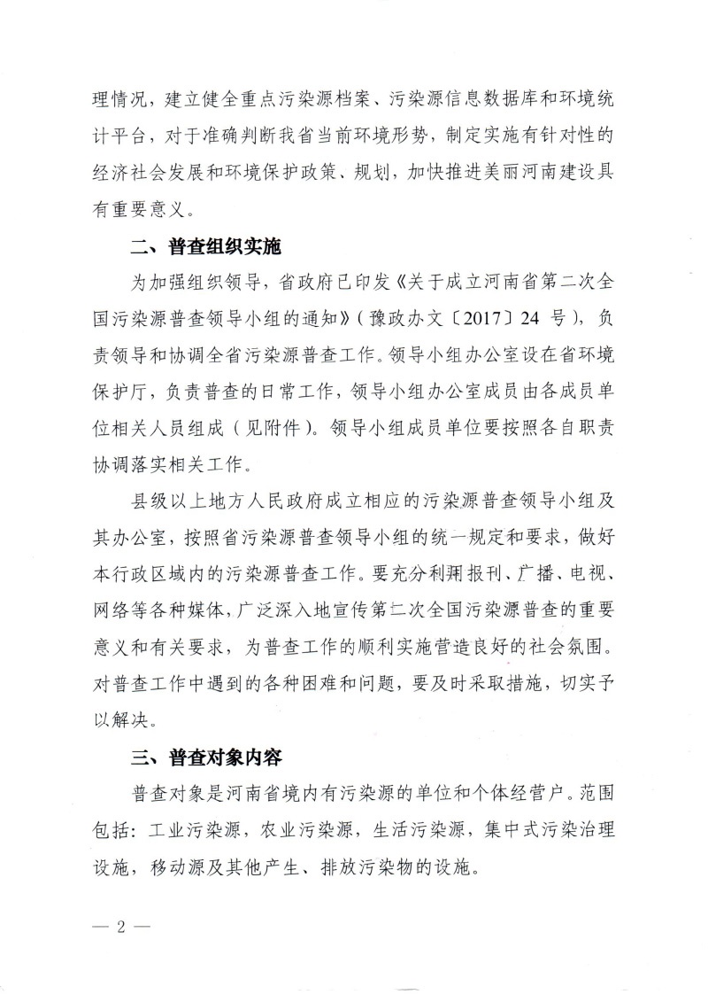 豫污普【2017】1號河南省第二次污染源普查領導小組關于開展河南省第二次全國污染源普查的通知