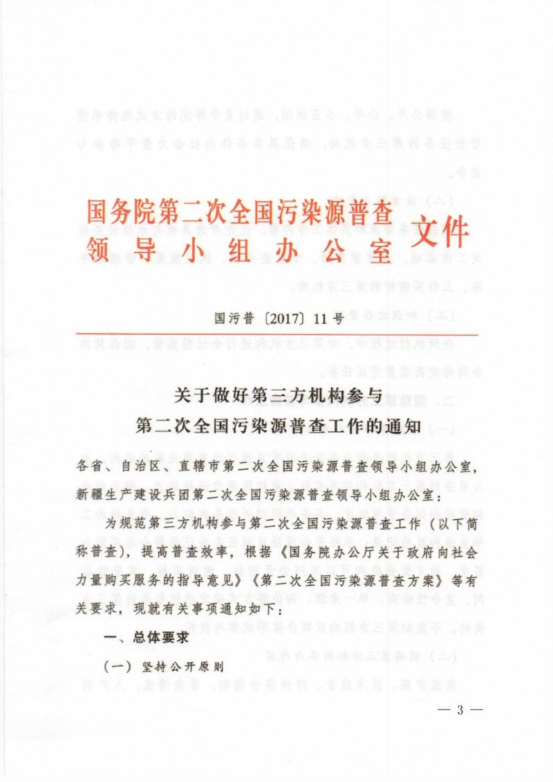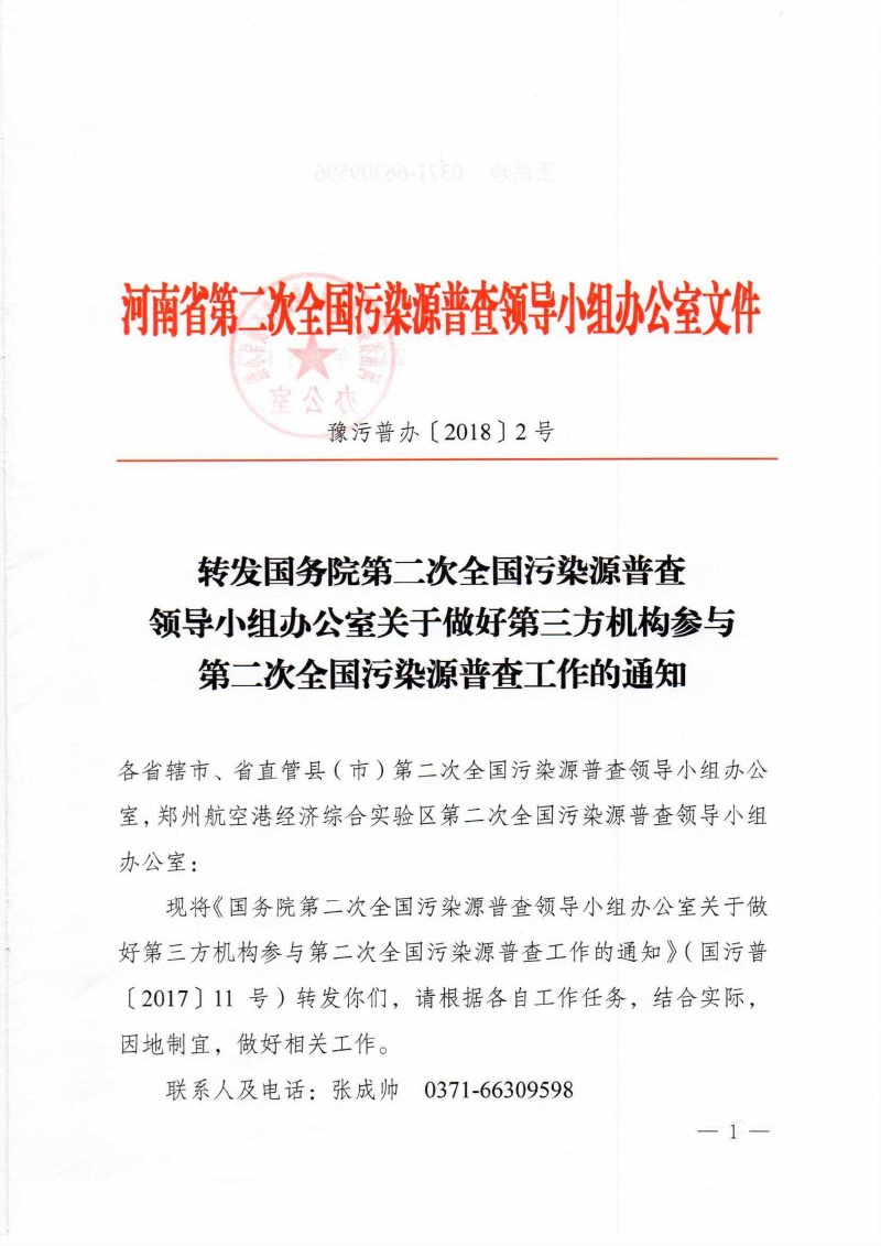 豫污普辦【2018】2號轉發國務院第二次全國污染源普查領導小組辦公室關于做好第三方機構參與第二次全國污染源普查工作的通知