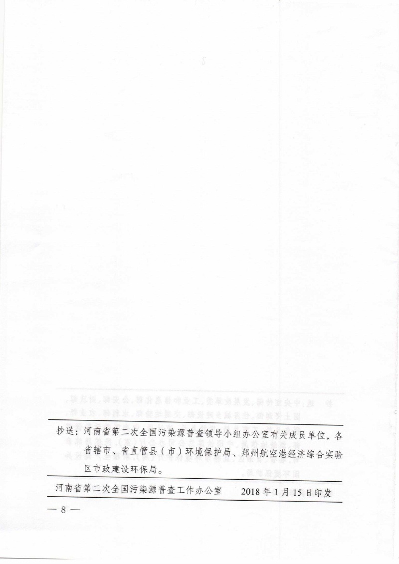 上一篇:豫污普辦【2018】1號關于報送《第二次全國污染源普查工作大事記》材料的通知 下一篇:豫污普辦【2018】3號轉發環保部、國家質檢總局關于開展第二次全國污染源普查生活源鍋爐清查工作的通知
