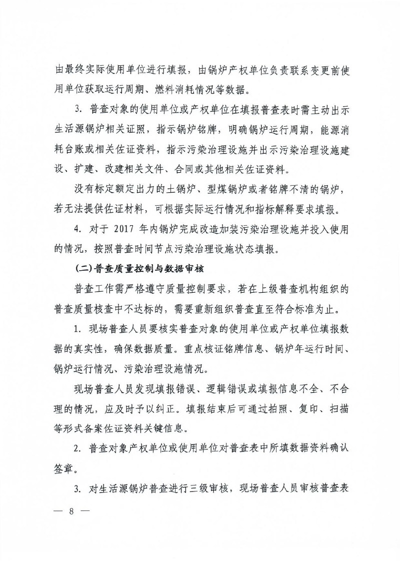豫污普辦【2018】3號轉發環保部、國家質檢總局關于開展第二次全國污染源普查生活源鍋爐清查工作的通知