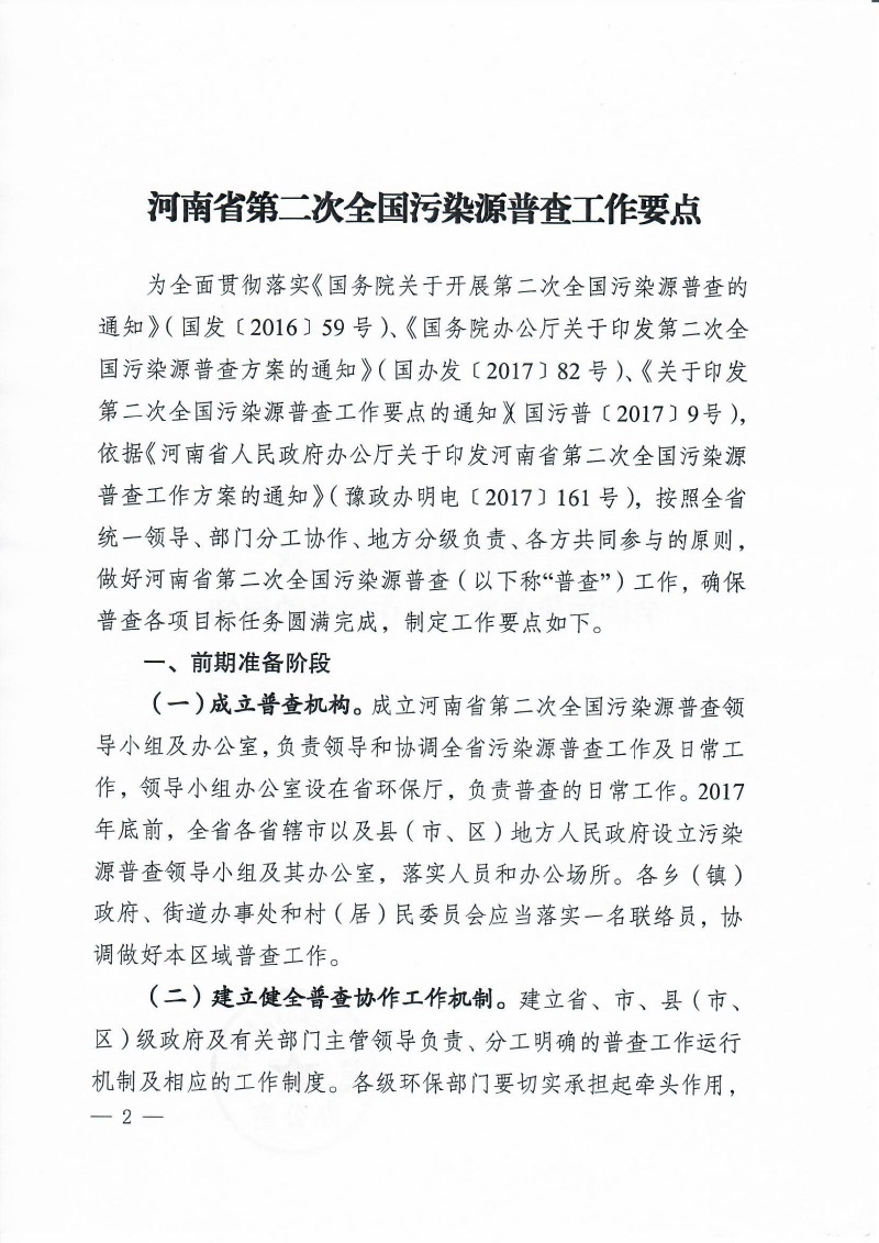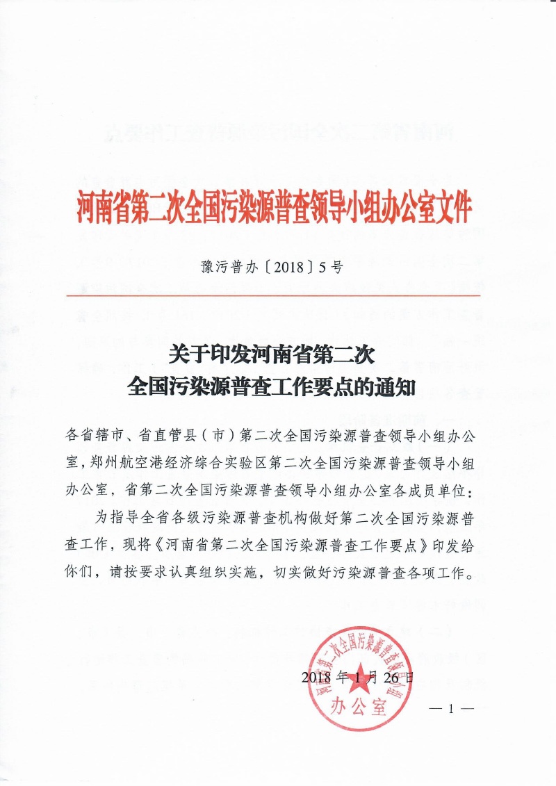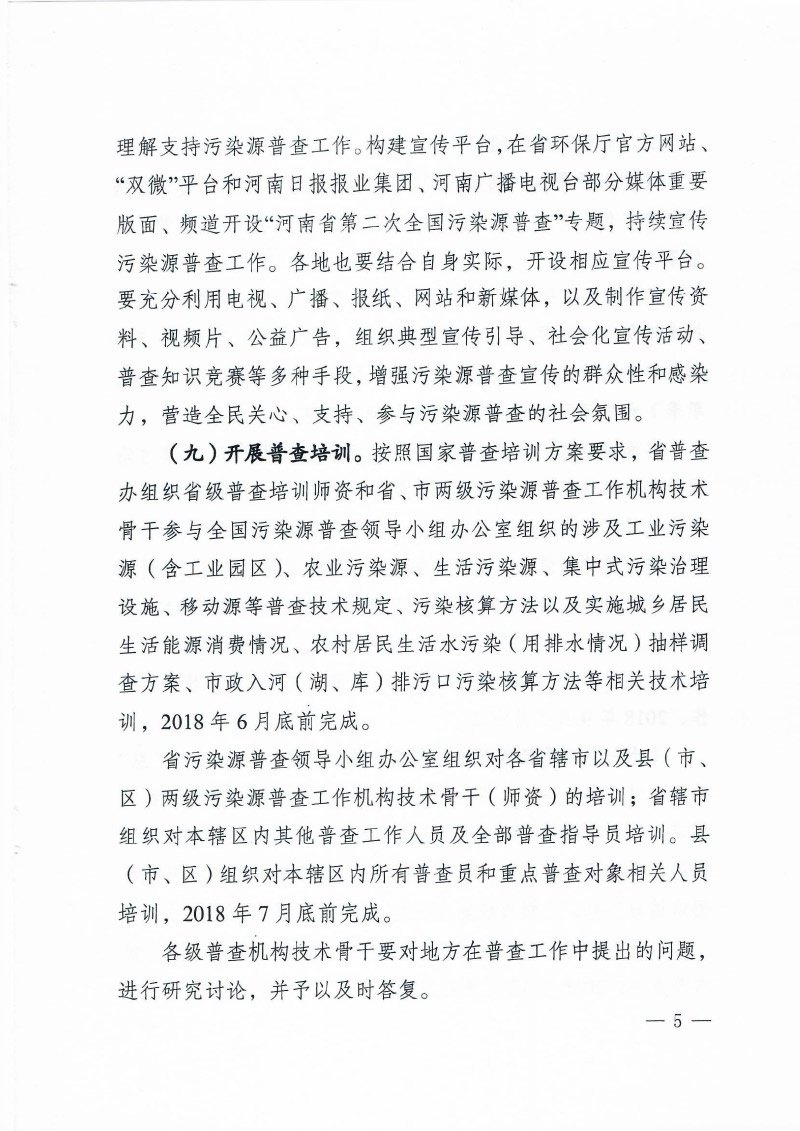豫污普辦【2018】5號(hào)關(guān)于印發(fā)河南省第二次全國(guó)污染源普查工作要點(diǎn)的通知