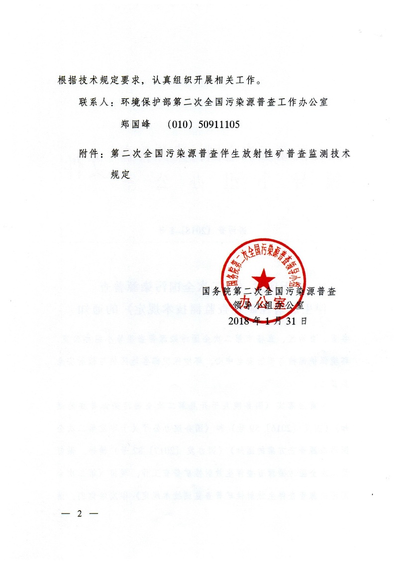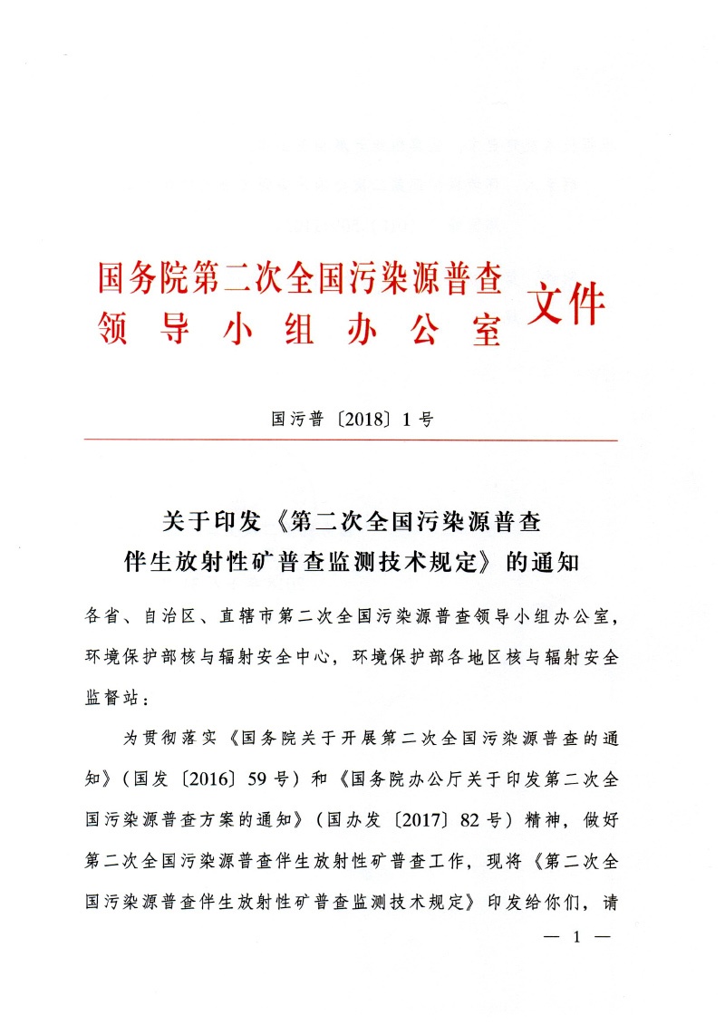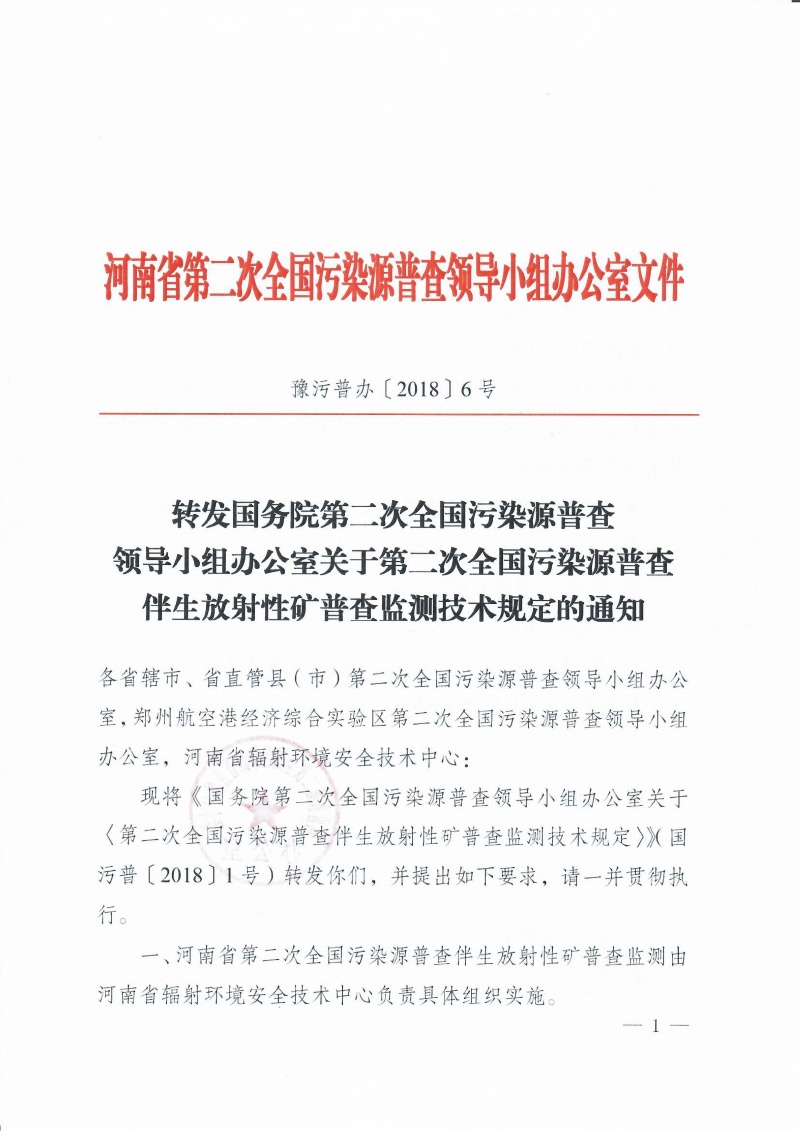 豫污普辦【2018】6號轉發國務院第二次全國污染源普查領導小組辦公室關于印發第二次全國污染源普查領導小組辦公室有關伴生礦普查監測技術規范的通知