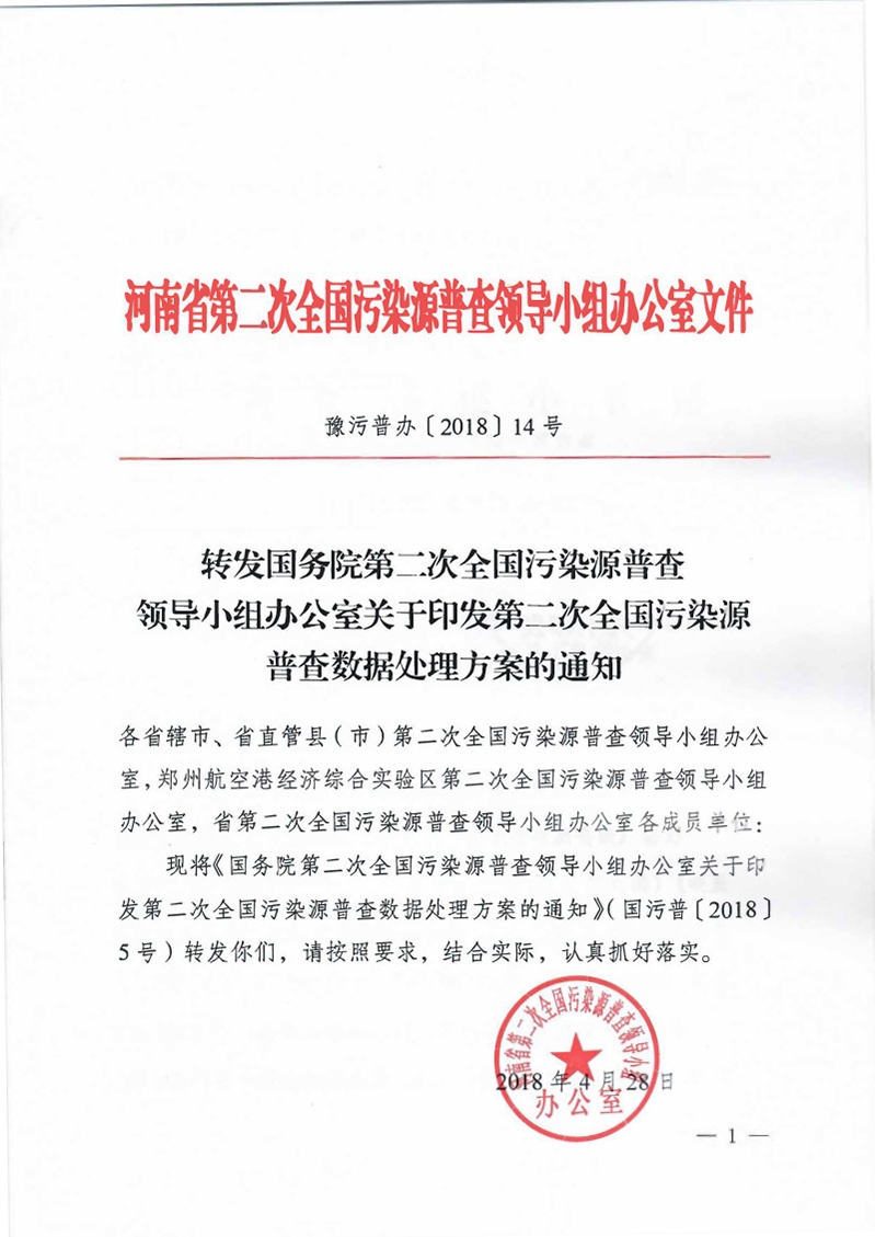 上一篇:豫污普辦【2018】13號關(guān)于加快推進河南省第二次全國污染源普查清查建庫工作的緊急通知 下一篇:豫污普辦【2018】15號轉(zhuǎn)發(fā)國污普領(lǐng)導小組辦公室關(guān)于加強第二次全國污染源普查保密管理工作的通知(1)