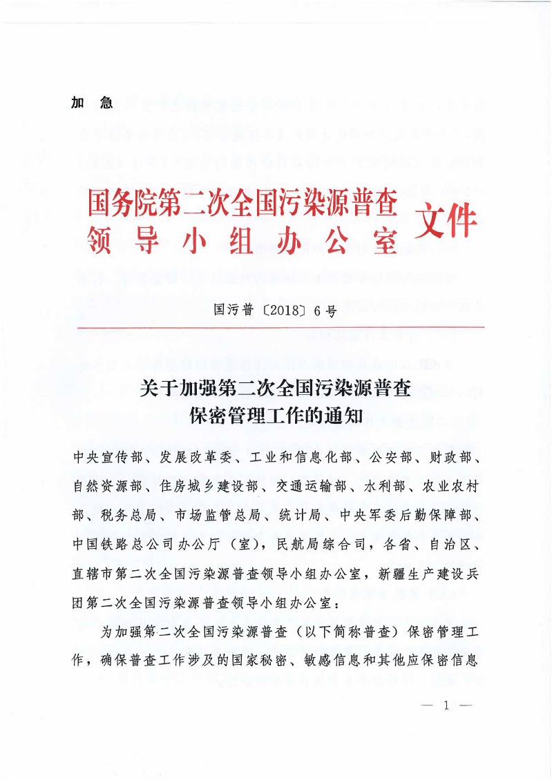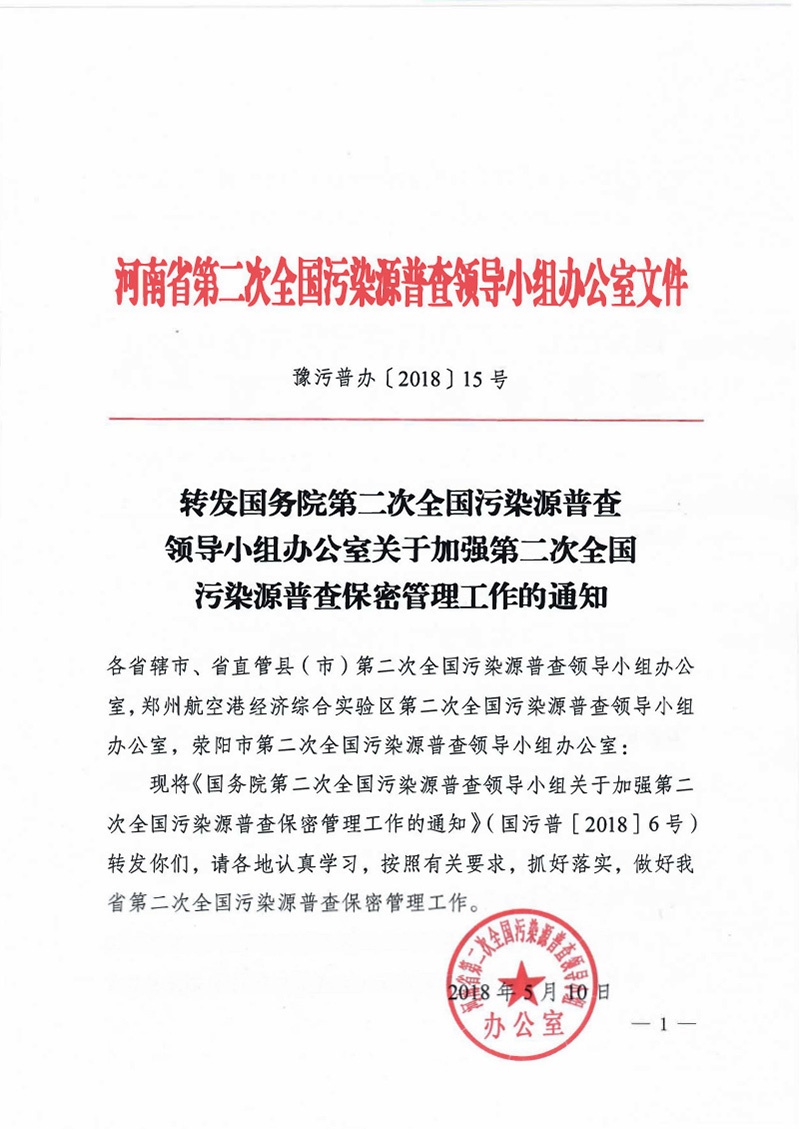 豫污普辦【2018】15號轉發國污普領導小組辦公室關于加強第二次全國污染源普查保密管理工作的通知(1)