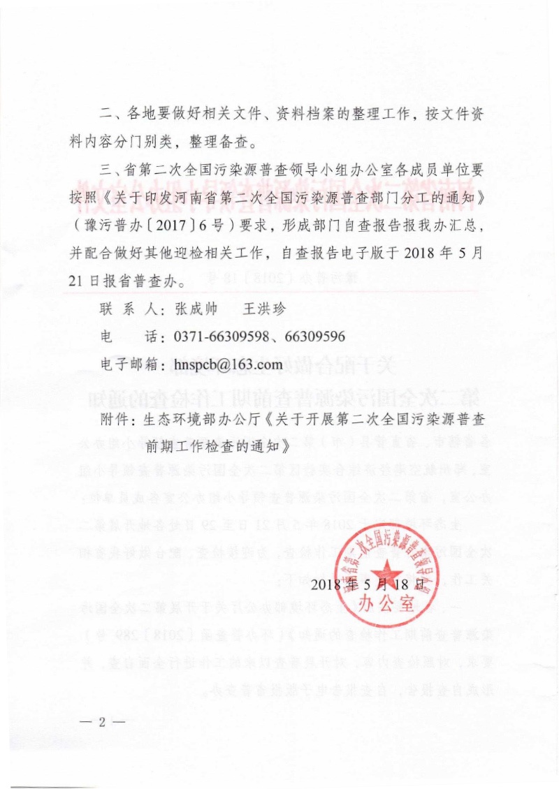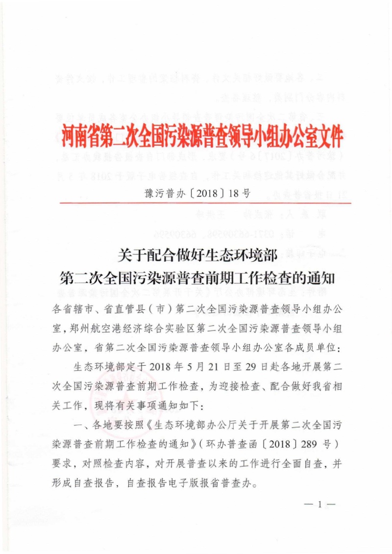 豫污普辦【2018】18號關于配合做好生態環境部第二次全國污染源普查前期工作檢查的通知