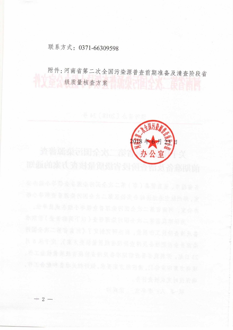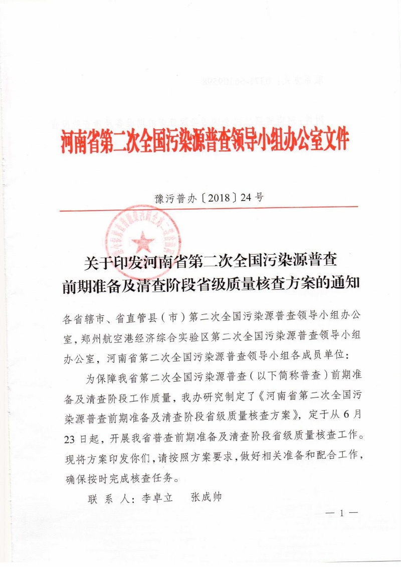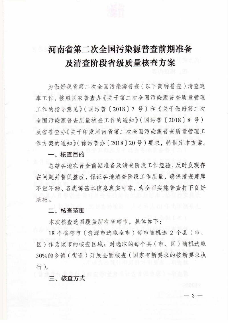 豫污普辦【2018】24號關于印發河南省清查階段省級質量核查工作方案的通知