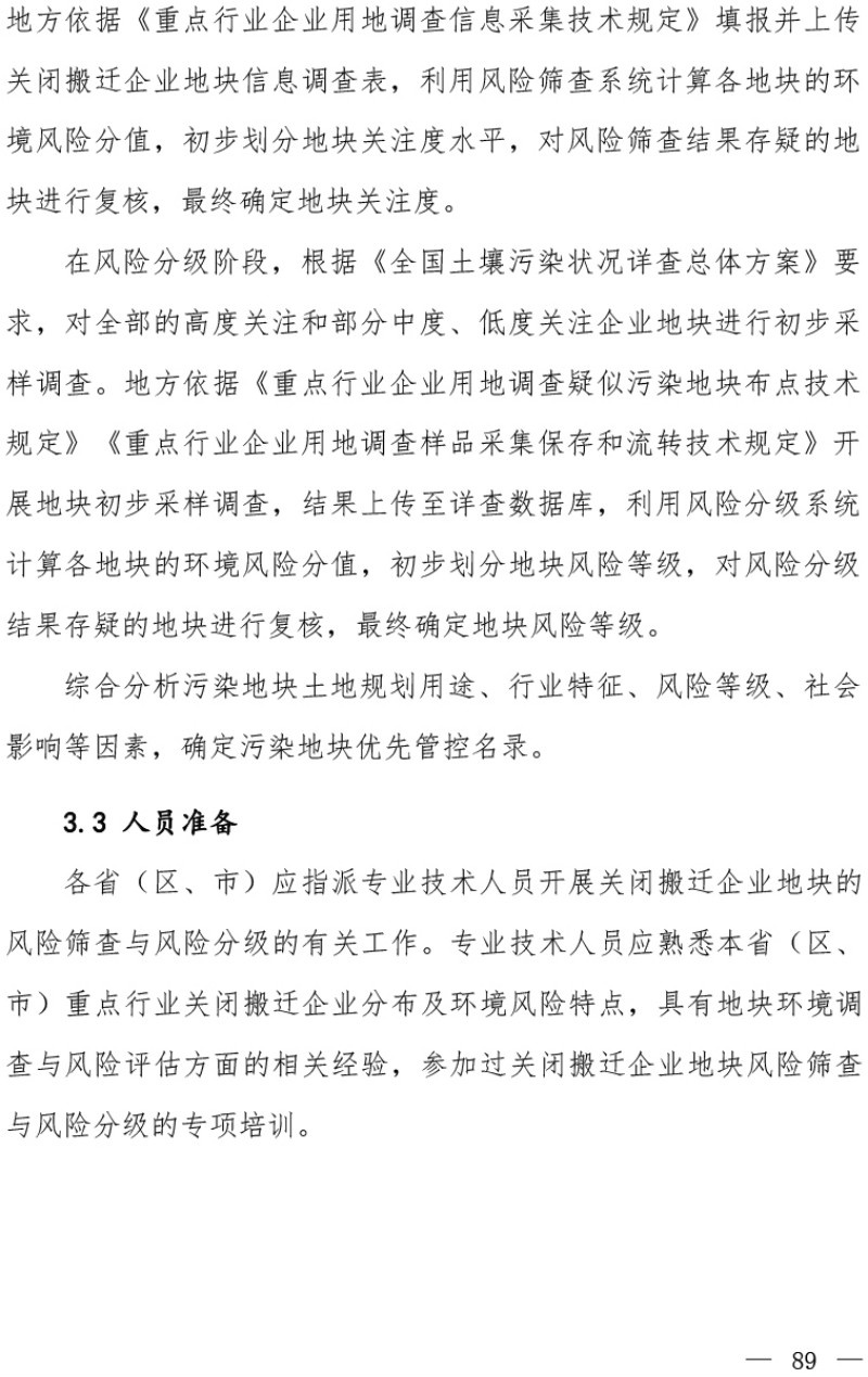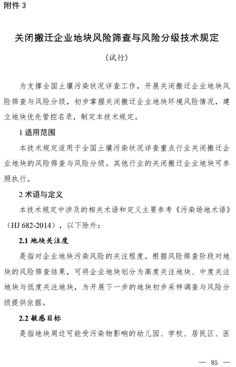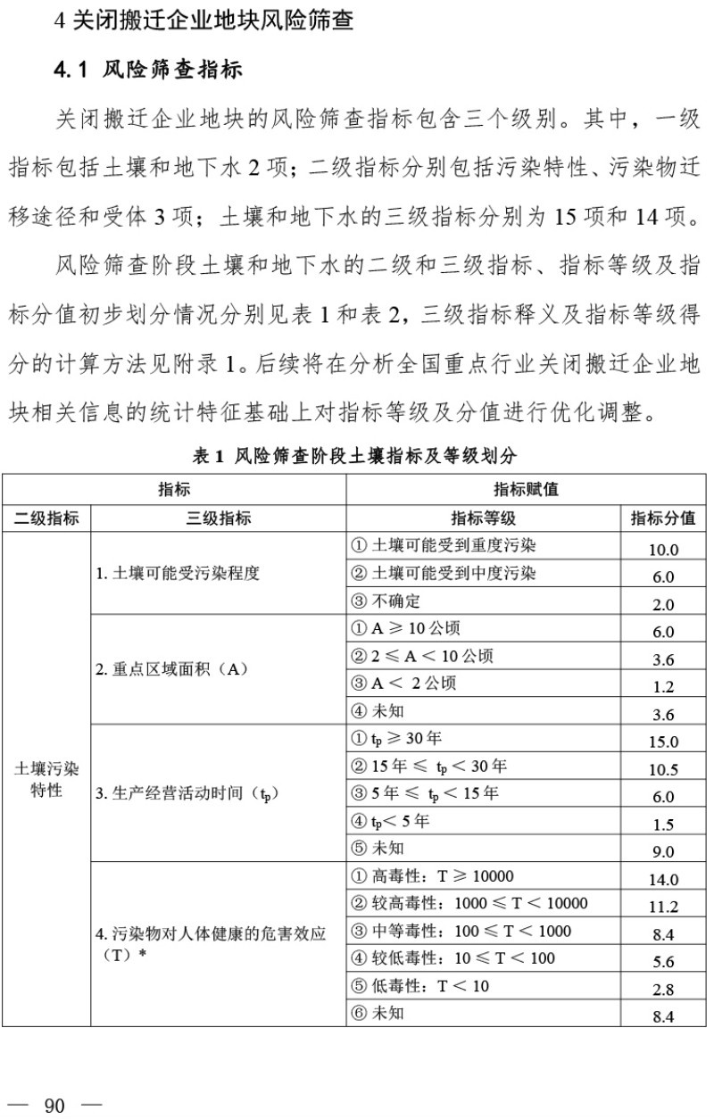 關閉搬遷企業地塊風險篩查與風險分級技術規定(試行)