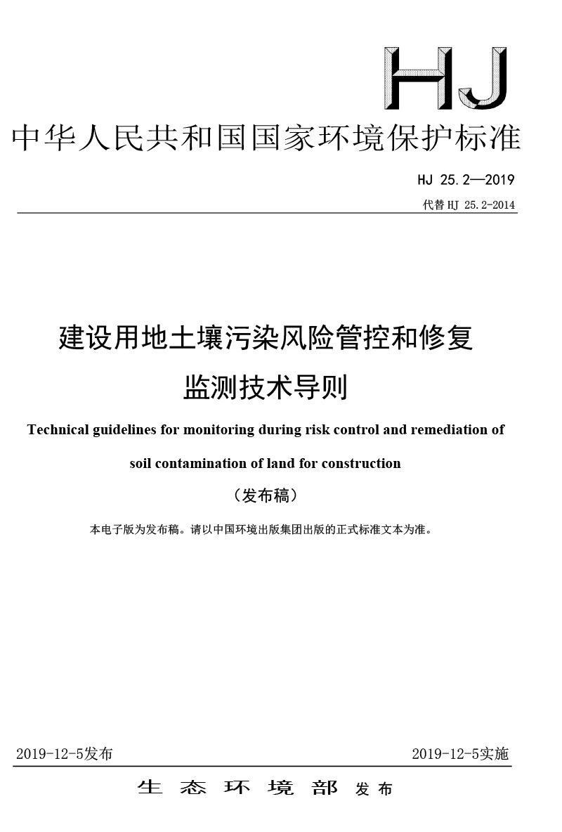 建設用地土壤污染風險管控和修復監測技術導則( HJ 25.2-2019 )